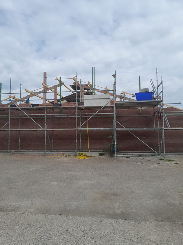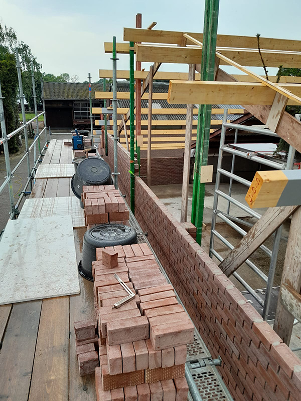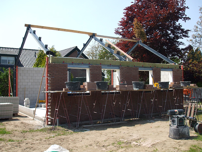 Metselwerk is gereed en de beplating kan gemonteerd worden.