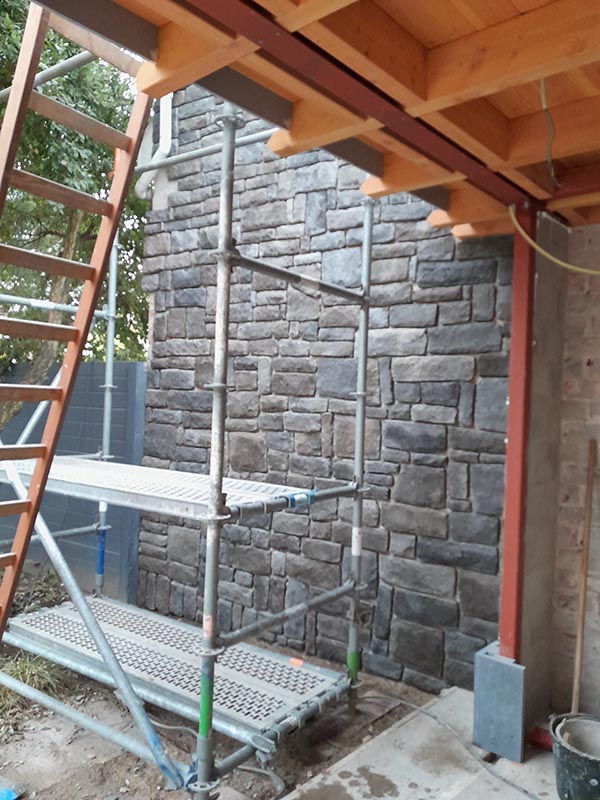 Bekleden, plakken geopitra op oude gevel